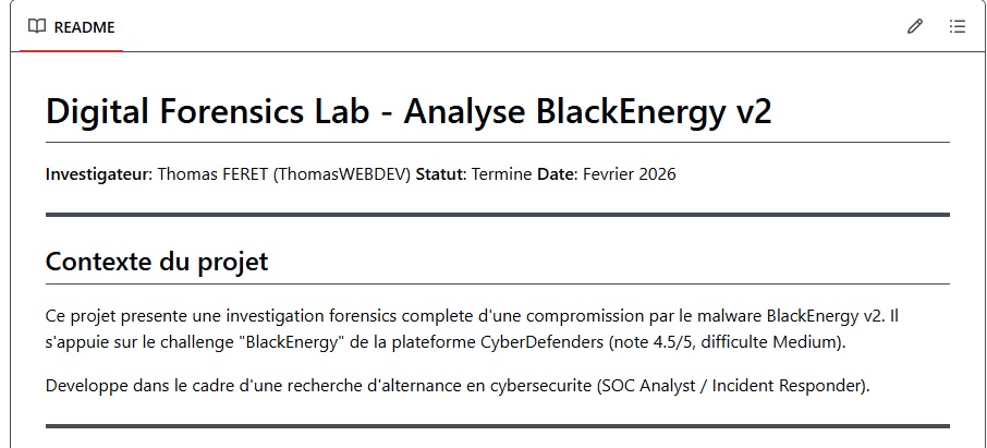 Investigation forensics complète d'une compromission par BlackEnergy v2. Analyse d'un dump mémoire Windows XP (2.1 Go) via Volatility 3. Injection dans svchost.exe, extraction du driver rootkit str.sys. Challenge CyberDefenders : 8/8.